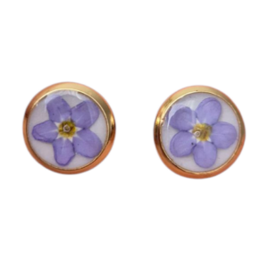 Kolczyki fioletowe niezapominajki w sztyfcie pozłacanym 18k złotem