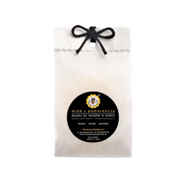 Składniki: BTMS (kondycjoner), masło kakaowe, alkohol cetylowy (emolient), Honeyquat z fermentem z rzodkwi (kondycjoner), miód, olejek eteryczny ze słodkiej pomarańczy, pantenol (prowitamina B5), mleczan sodu (humuktant), wosk pszczeli, olej makadamia, ekstrakt z miodunki, ekstrakt z kwiatu lipy, ekstrakt z kwiatu bzu czarnego, olej z awokado, olej z orzecha włoskiego, konserwant (akceptowany przez Eco-cert)